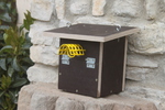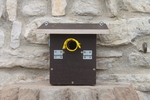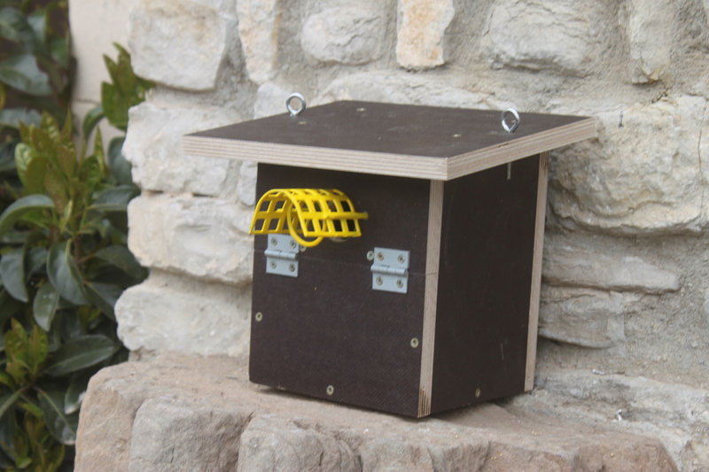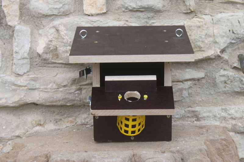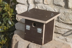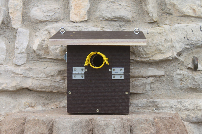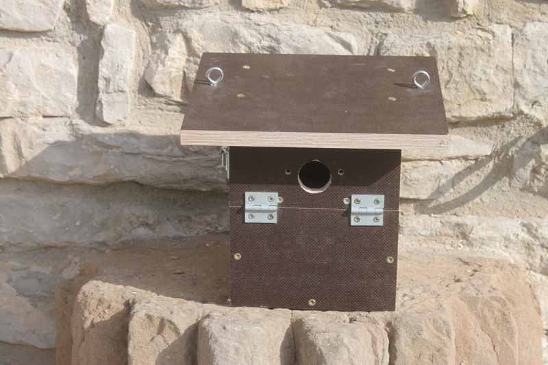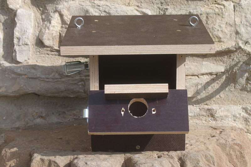 19 cm d'alçada x 13 cm de longitud x 13 cm d'amplada. Amb un orifici d'entrada rodó de 3 cm de diàmetre.