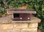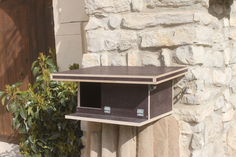 21 cm d'alçada x 30 cm de llargada x 37 cm d'amplada. Amb un orifici d'entrada quadrat de 14 cm d'altura x 14 cm d'amplada.