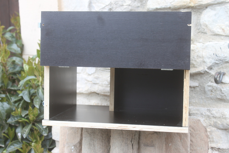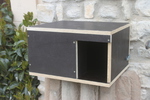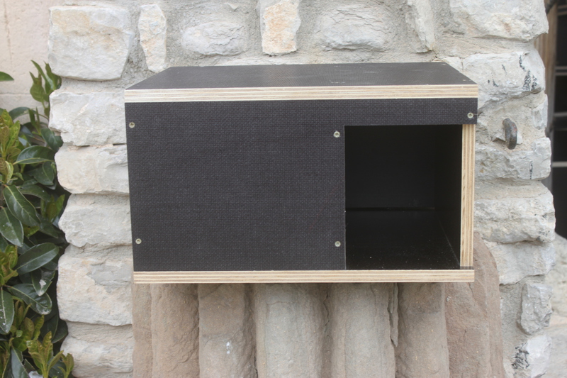 21 cm d'alçada x 30 cm de llargada x 37 cm d'amplada. Amb un orifici d'entrada quadrat de 14 cm d'altura x 14 cm d'amplada.